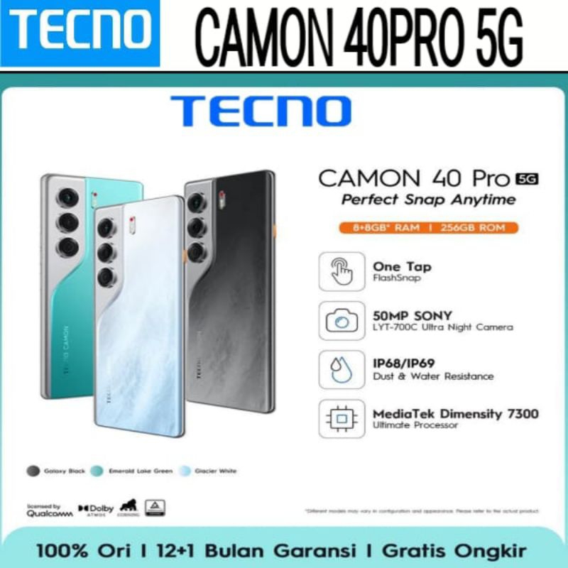 TECNO CAMON 40 PRO 5G 8+8/256GB Garansi Resmi