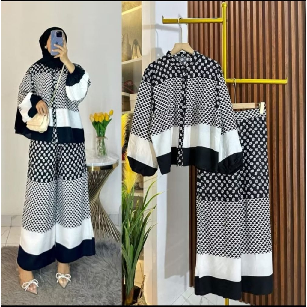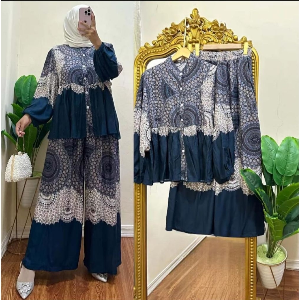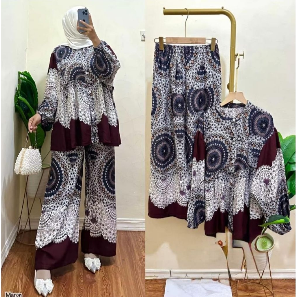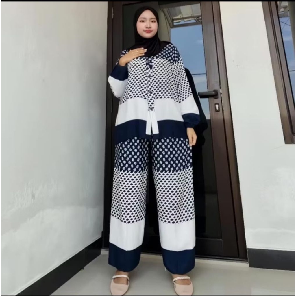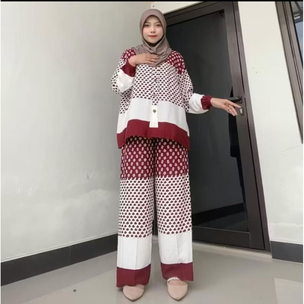 Pamela one set baby doll, setelan celana wanita dewasa busui bahan rayon motif terbaru kekinian