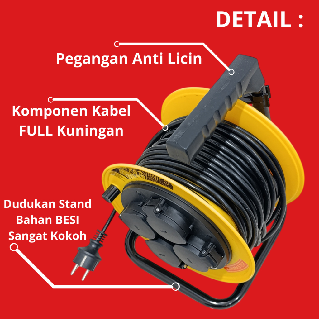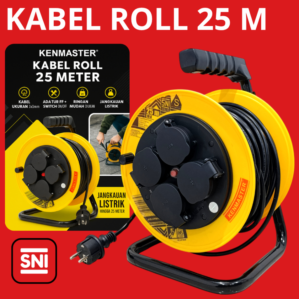 Kenmaster Kabel ROLL 25 Meter ( SNI ) Box Kabel Colokan Listrik Stop Kontak 4 Lubang Kabel Terminal Gulungan