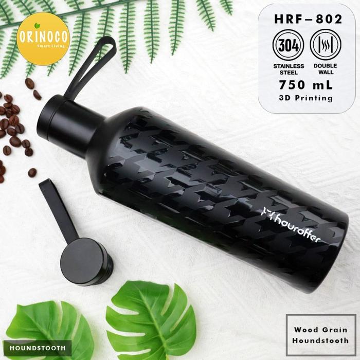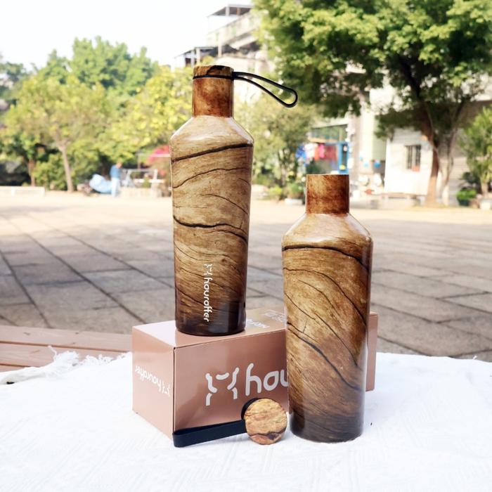 [PROMO] BOTOL MINUM 750ML STAINLESS STEEL SUS304 WITH HANDLE HRF802 TUMBLER VACUUM FLASK HOT & COLD BOTOL MOTIF KAYU THERMOSTS110X BLACK 500ML