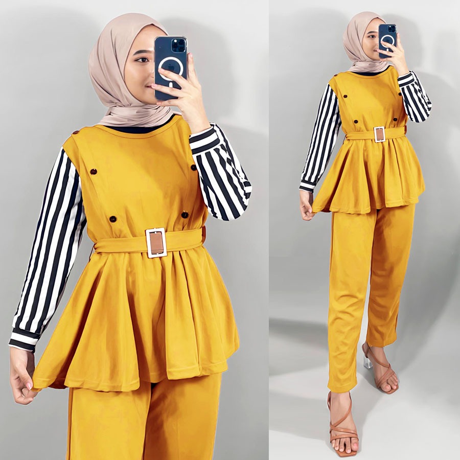 SETELAN ADELI SET BAJU DAN CELANA WANITA LENGAN SALUR GL FASHION