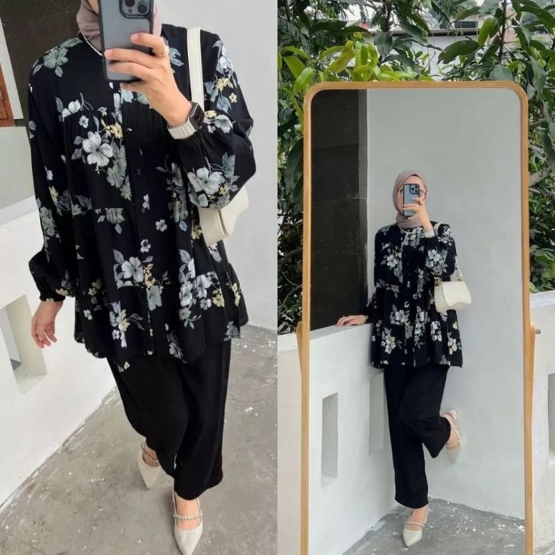 Oneset Alivia Rayon -setelan Rayon motif kelapa tggu