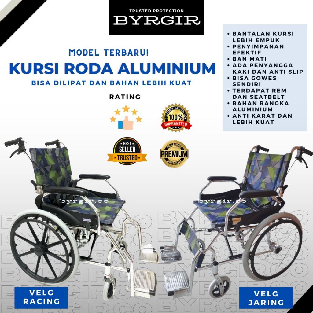 BYRGIR Kursi Roda Lipat Aluminium Premium Wheelchair Alumunium Traveling Travel Foldable Wheel Chair Lansia Medis Rumah