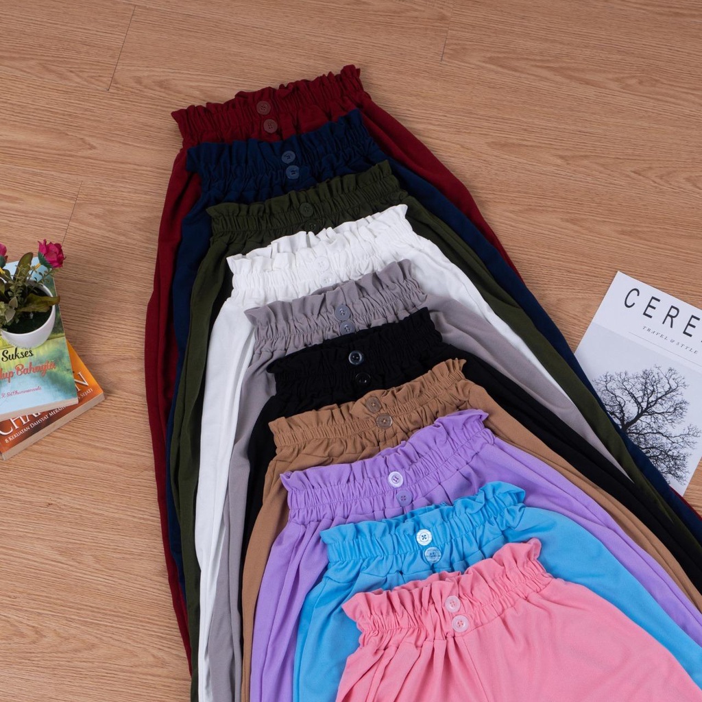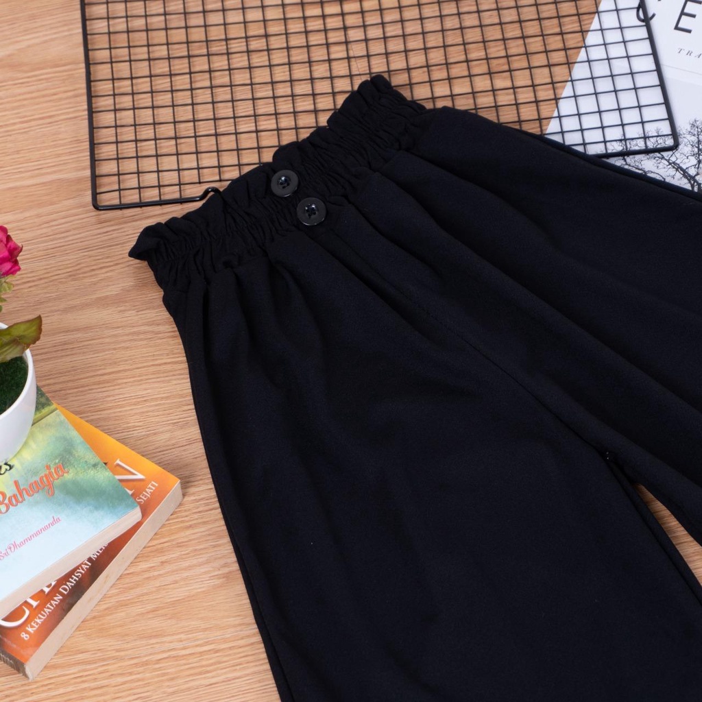 IL - Button Pants Wanita / DOBBY PANTS 2 KANCING CELANA KULOT WANITA / Celana Panjang Wanita Korean Style Loose High Waist