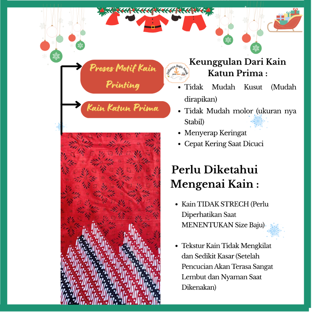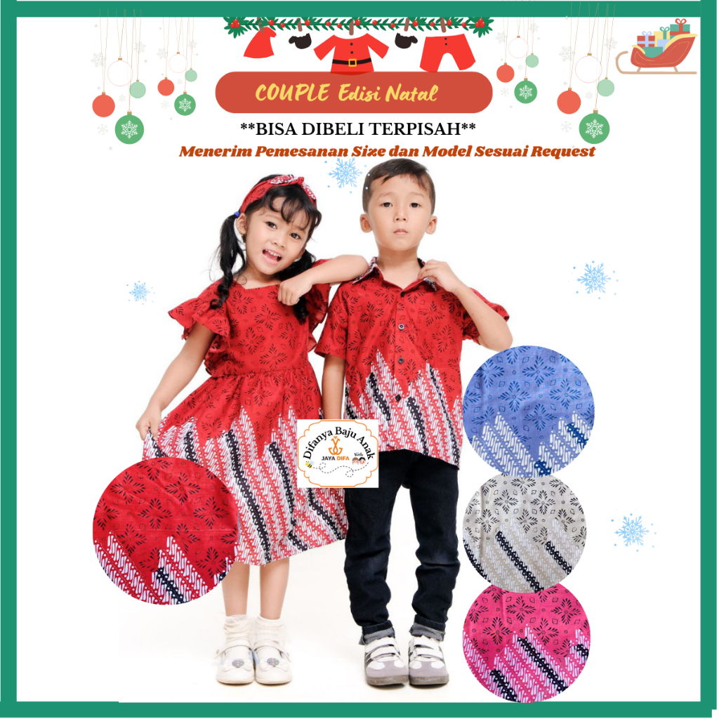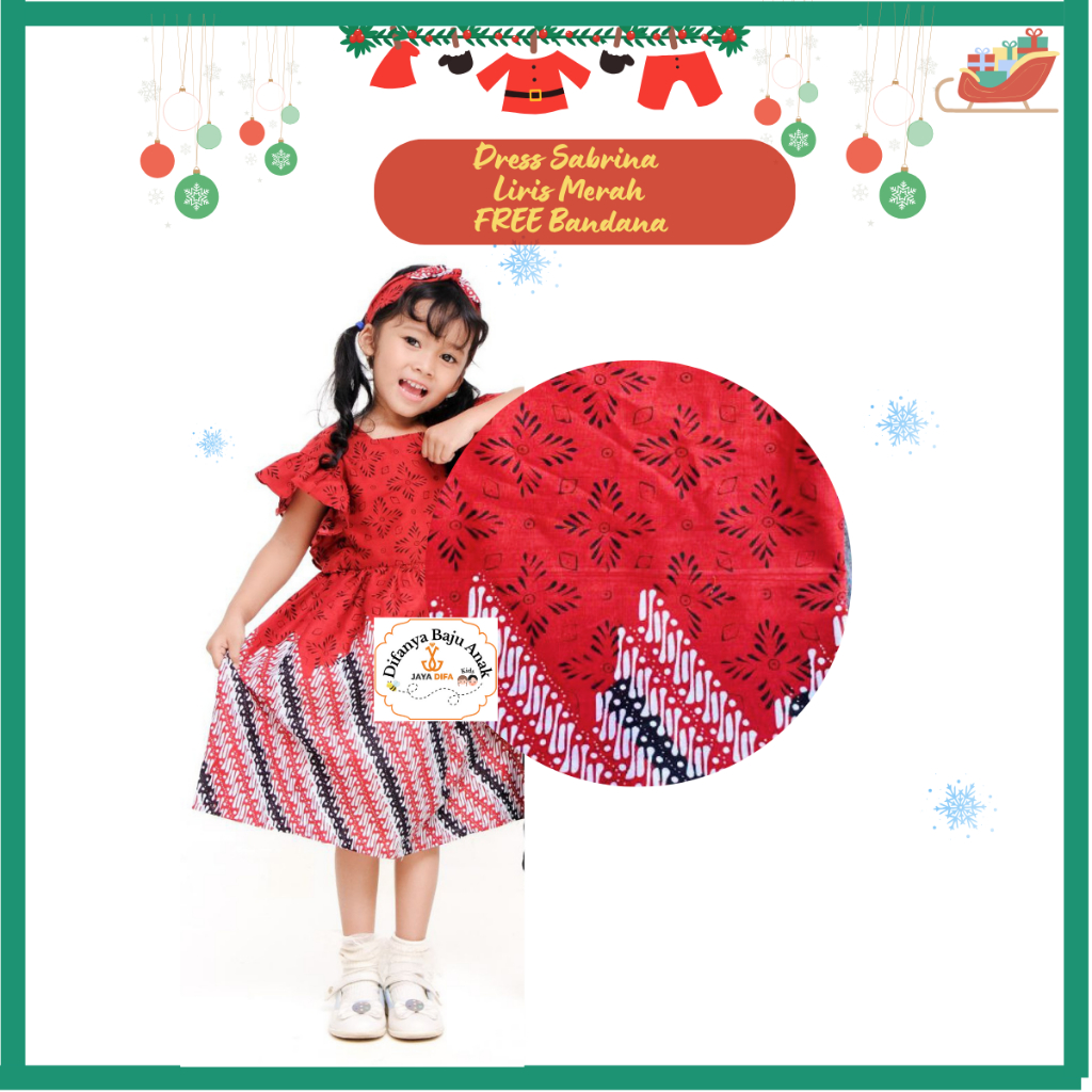 Baju Dress Gaun Batik Anak Edisi Natal Merry Chrismas Kain Katun Prima Printing Usia 3-13 Tahun