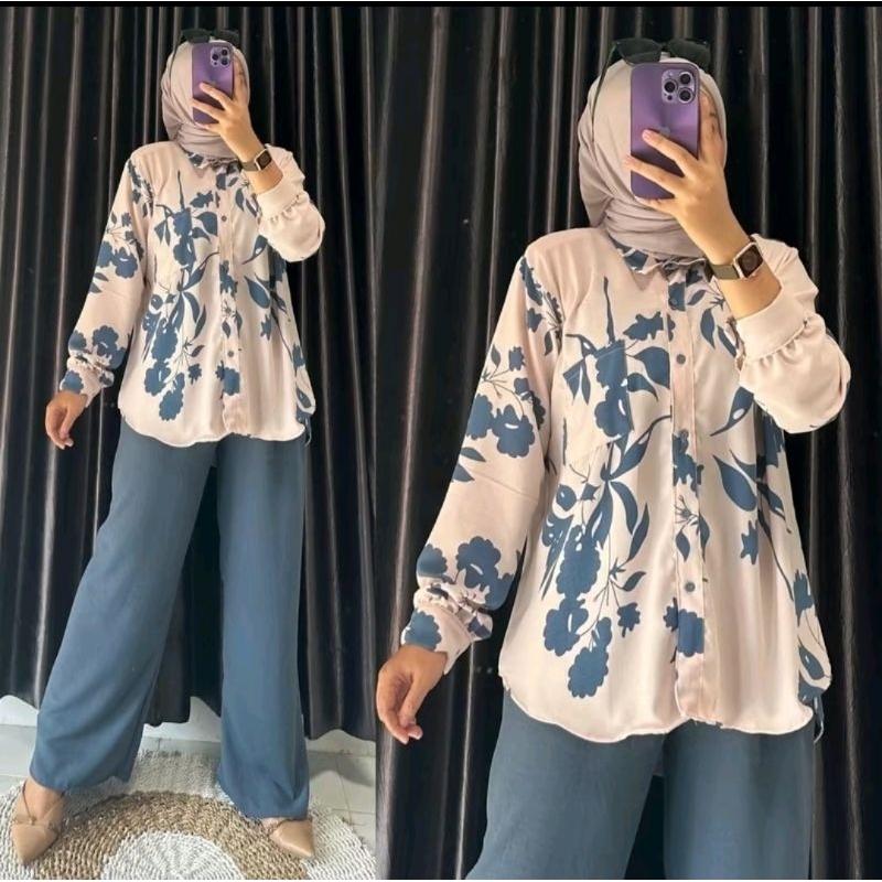 Mylla Flower One Set Kulot | Setelan Bunga Kombinasi Crinkle Airflow
