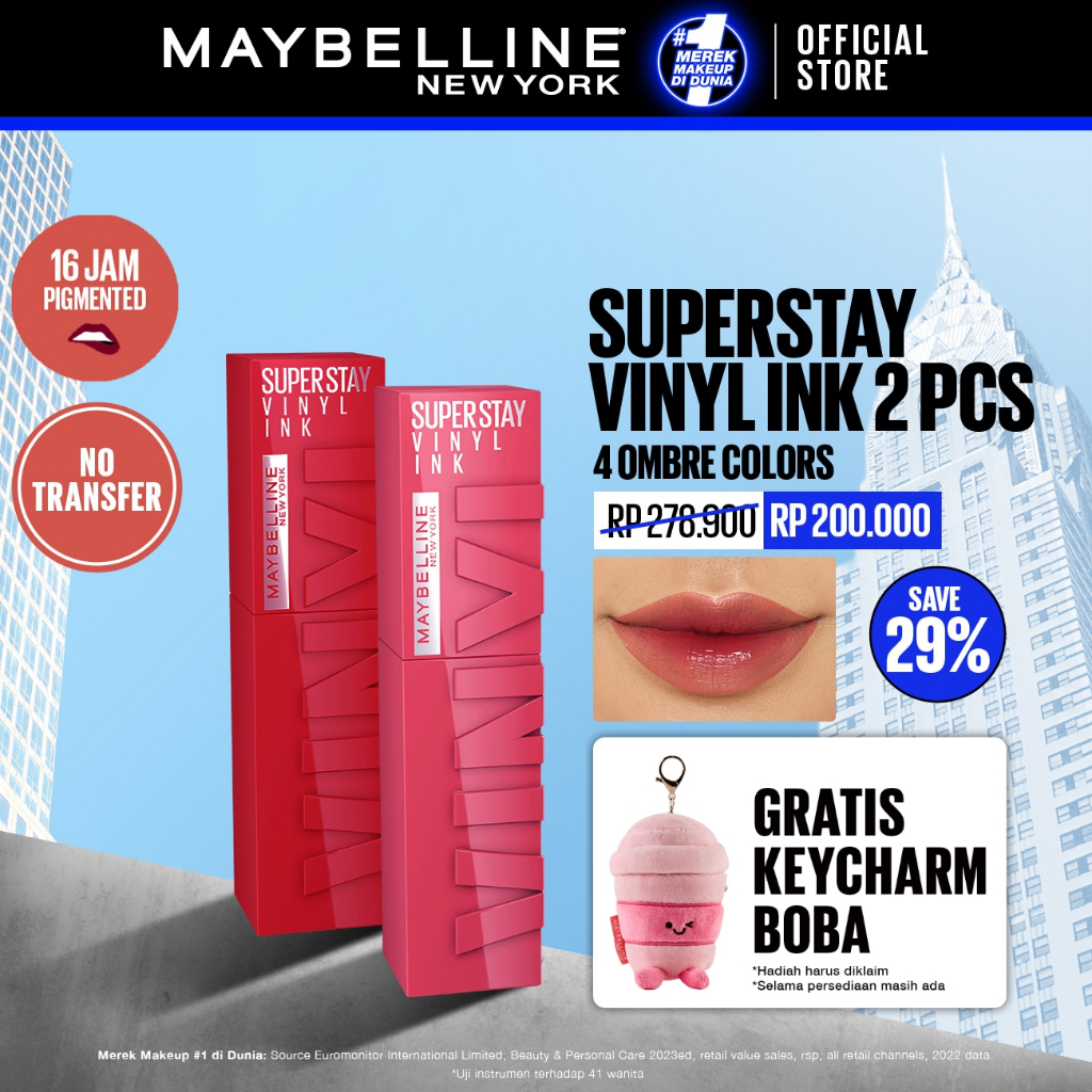 maybelline official store MAYBELLINE OFFICIAL Paket Hemat Superstay Vinyl Ink 2 pcs Ombre Set Lipstick Long Lasting