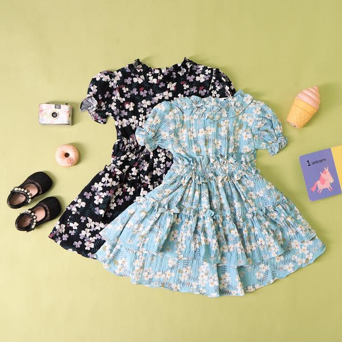 [PROMO] 3T12T DRESS CASUAL ANAK PEREMPUAN CRINKLE TUNIK BUNGA ANAK KOREAN STYLE FEMININE FASHION LOOSEFITTING DHITAM SIZE L