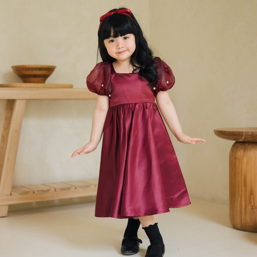 DOOBEEDAM CAROL DRESS - Dress Anak Perempuan Merah Putih Satin Natal