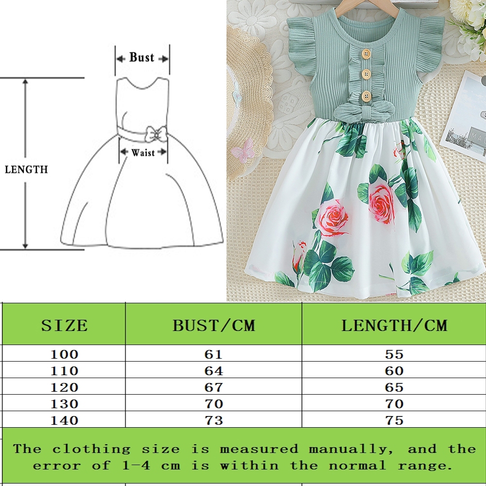 2-8Yrs Sage green Gaun Princess Cetak Gadis Cantik 2025 beautiful girl party dress