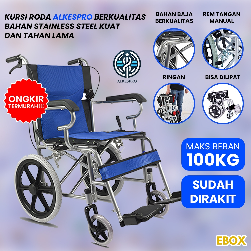 ❤️SUDAH RAKIT❤️ Kursi Roda Lipat 16 Inch Alkespro - Beban Maks 100 KG, Ringan & Mudah Disimpan