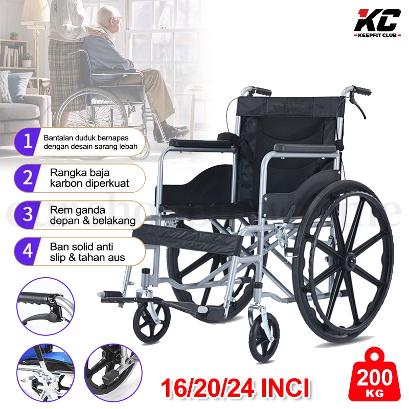 24 inci Kursi Roda Medis /16inci Kursi Roda Standard Rumah Sakit /20inci Kursi Roda Alluminium Bisa Lipat Portable Trave