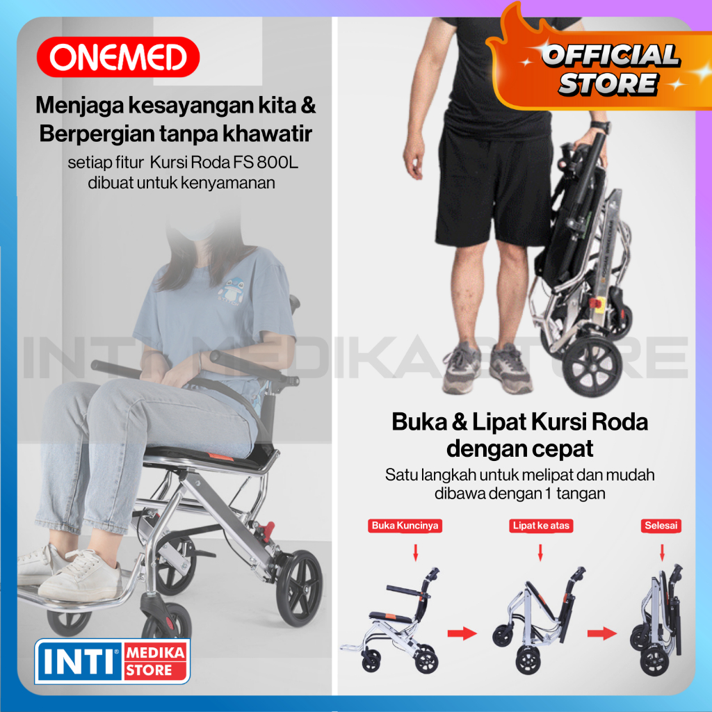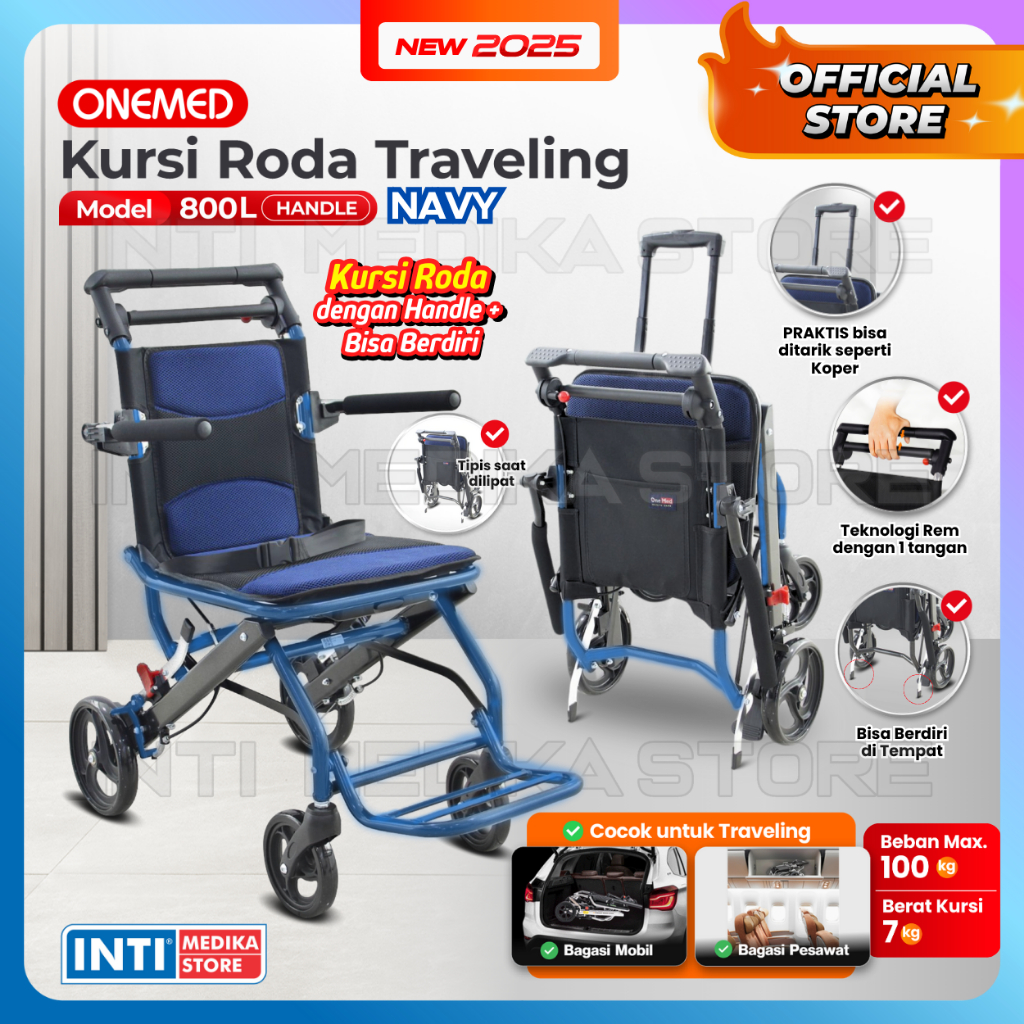 ONEMED - Kursi Roda TRAVEL PORTABLE Aluminium 800L + Handle TRAVELLING