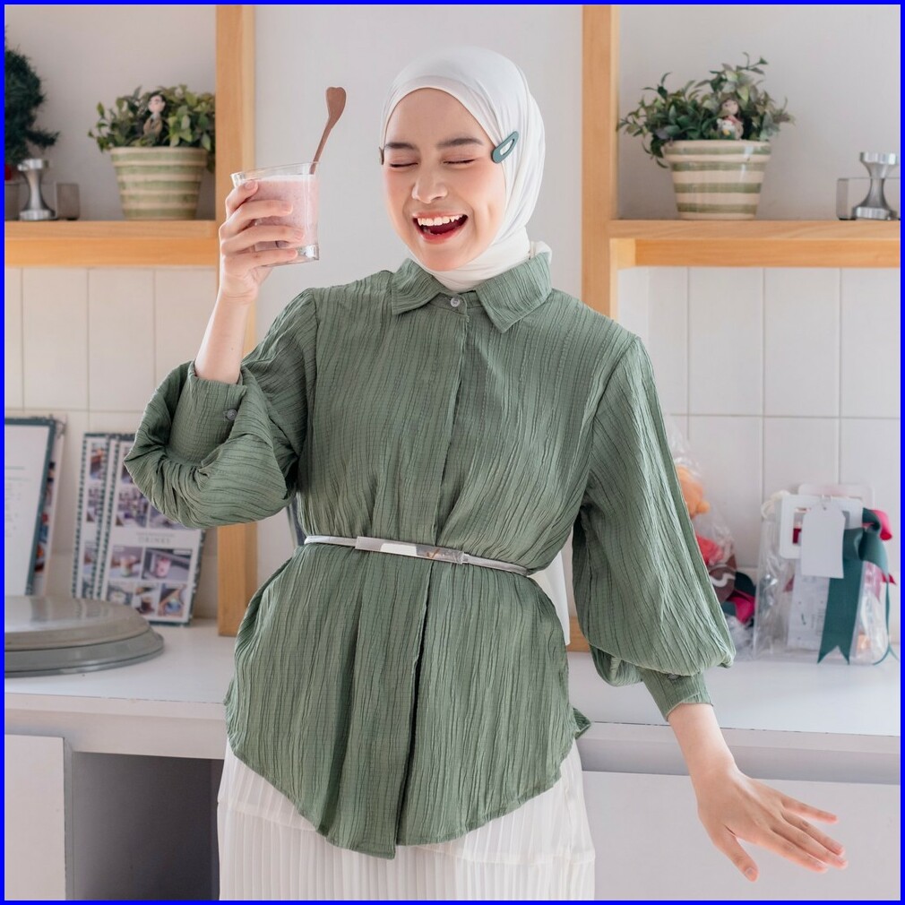 Mybamus Crushy Kemeja Ballon Kemeja Muslim Kemeja Tangan Panjang Kemeja Kerja