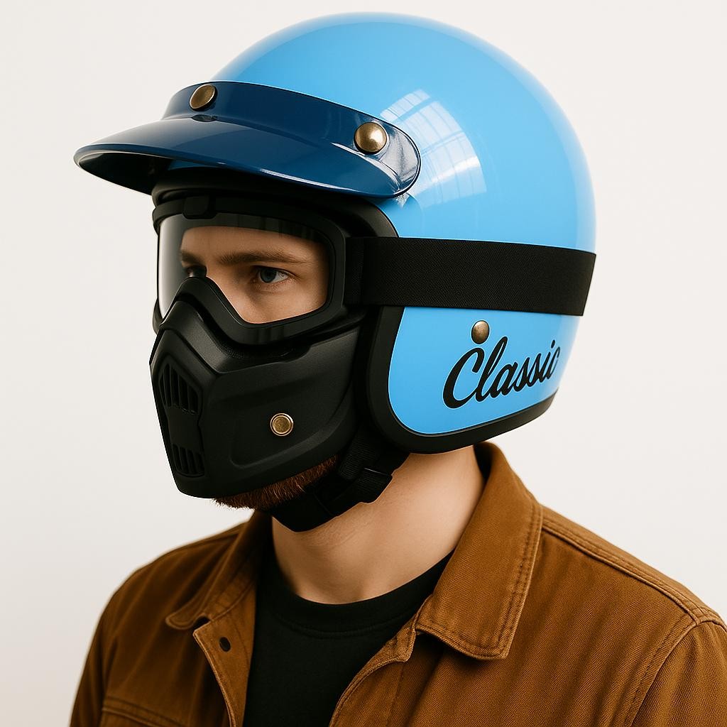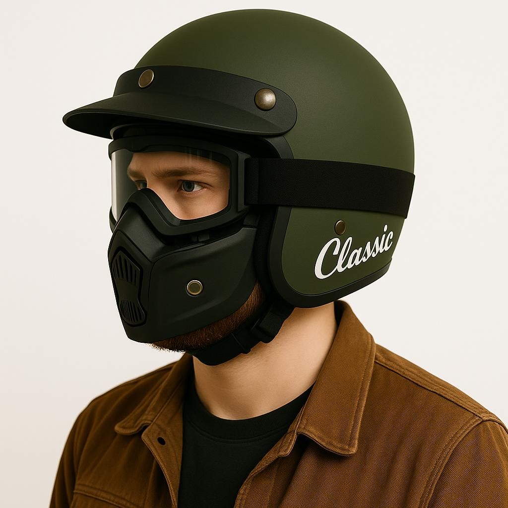 Helm Bogo Classic Pria Dewasa Full Face Kacamata Google Mask Pet Pendek Ori Aman SNI Motorcycle