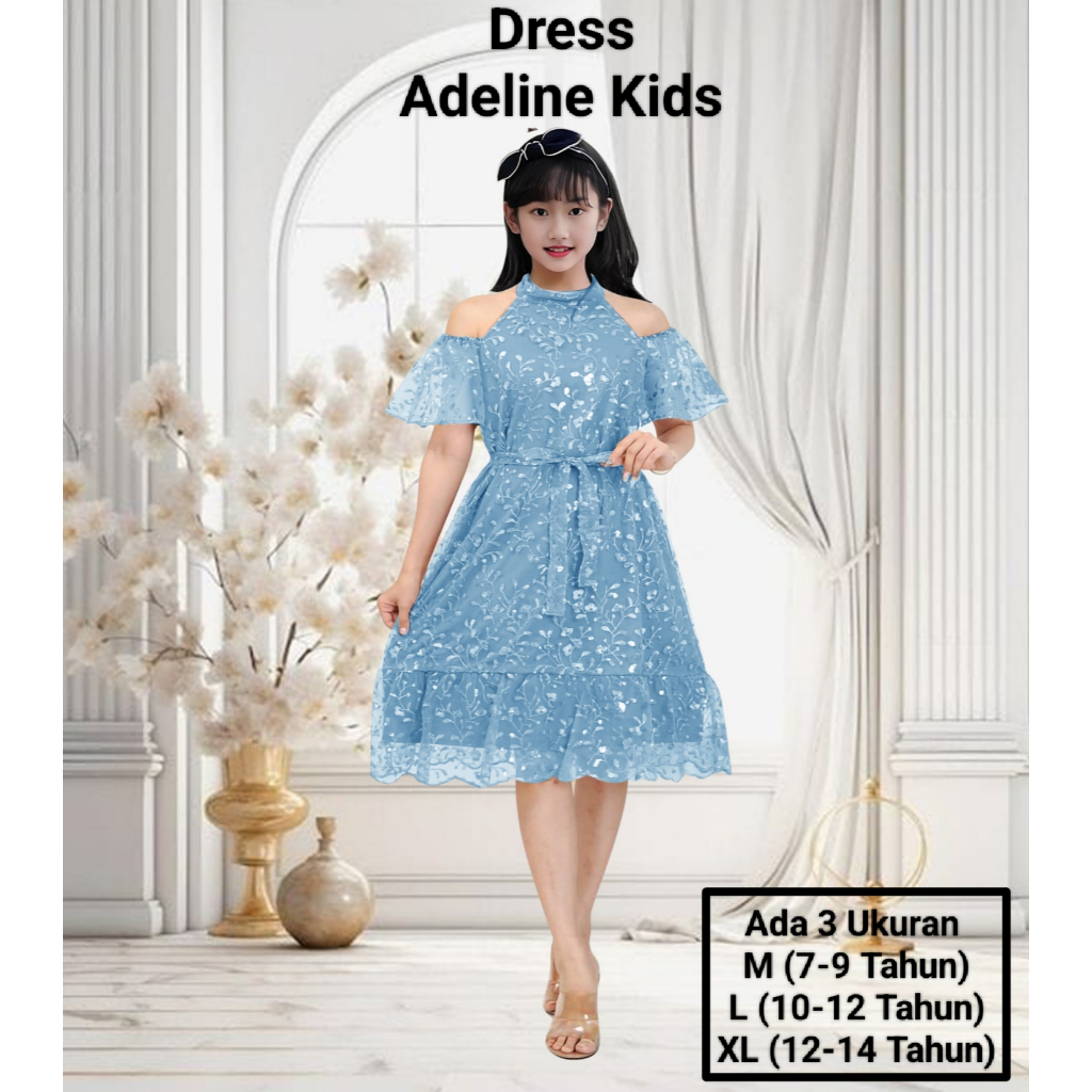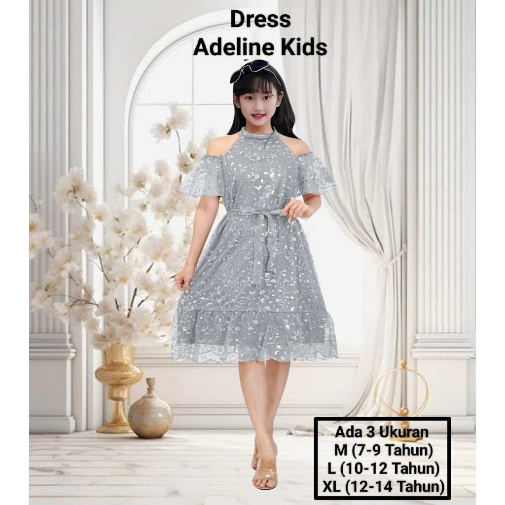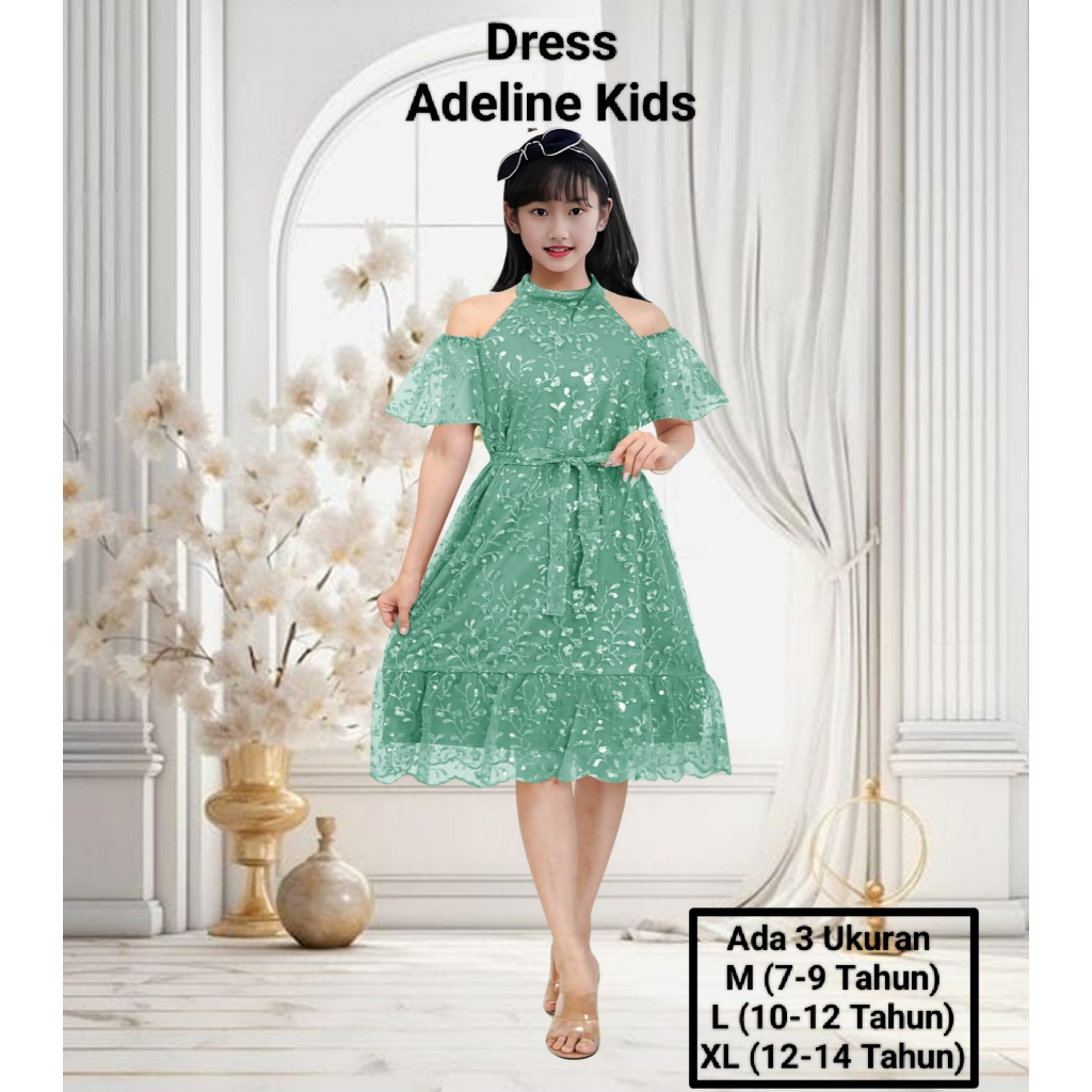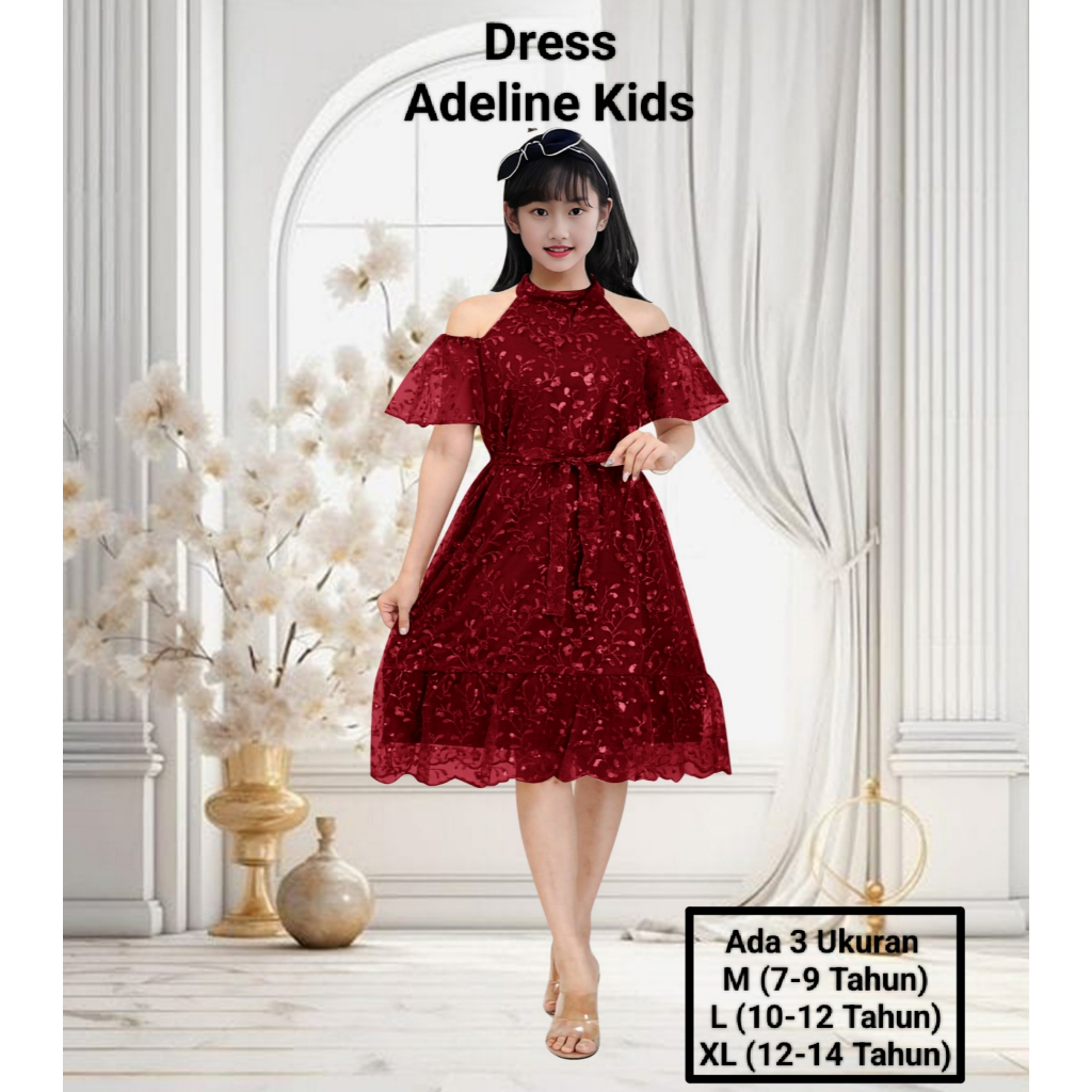 Dress Anak Perempuan Remaja Terbaru Full Brokat Mutiara Dress Adeline Kids 7-14 Tahun Dress Pesta Natal Abg el Kekinian