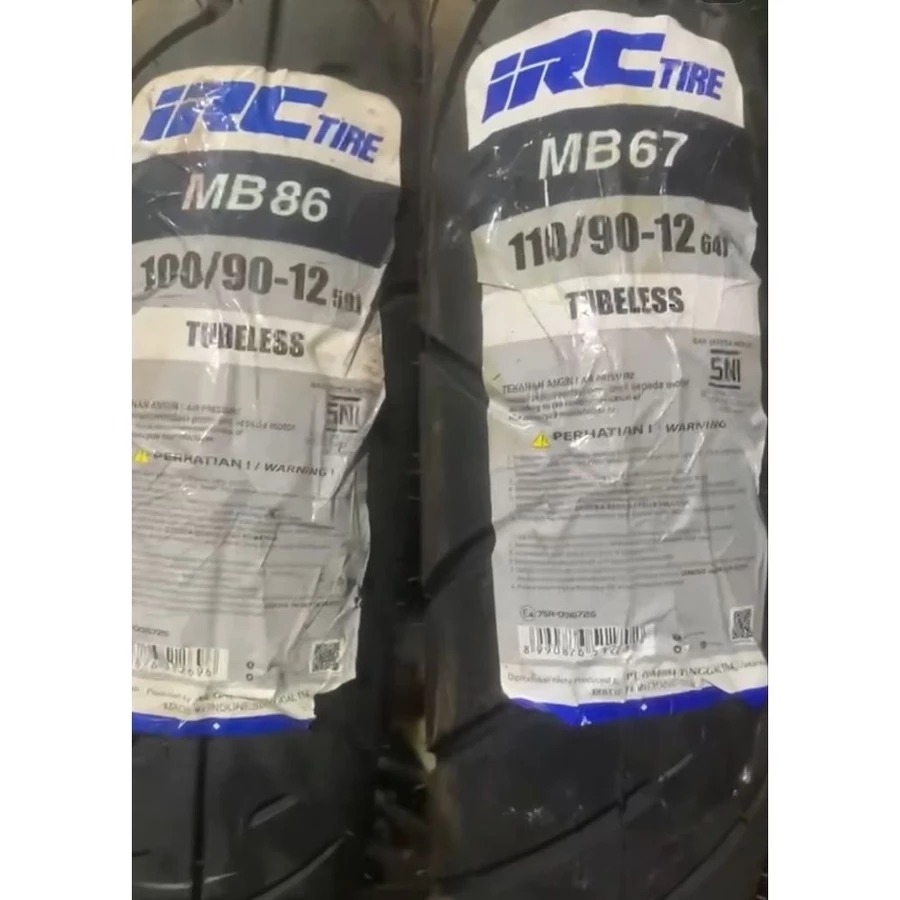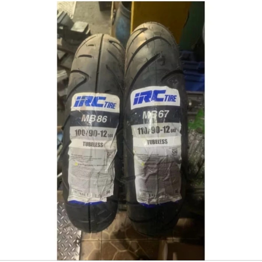 PAKET 2 BAN LUAR TUBELES IRC (100/90-12 MB86 DAN 110/90-12 MB 67) BAN DONAT RING 12 IRC THN TERBARU