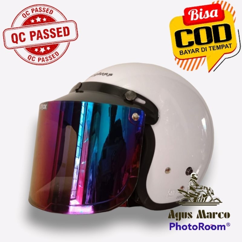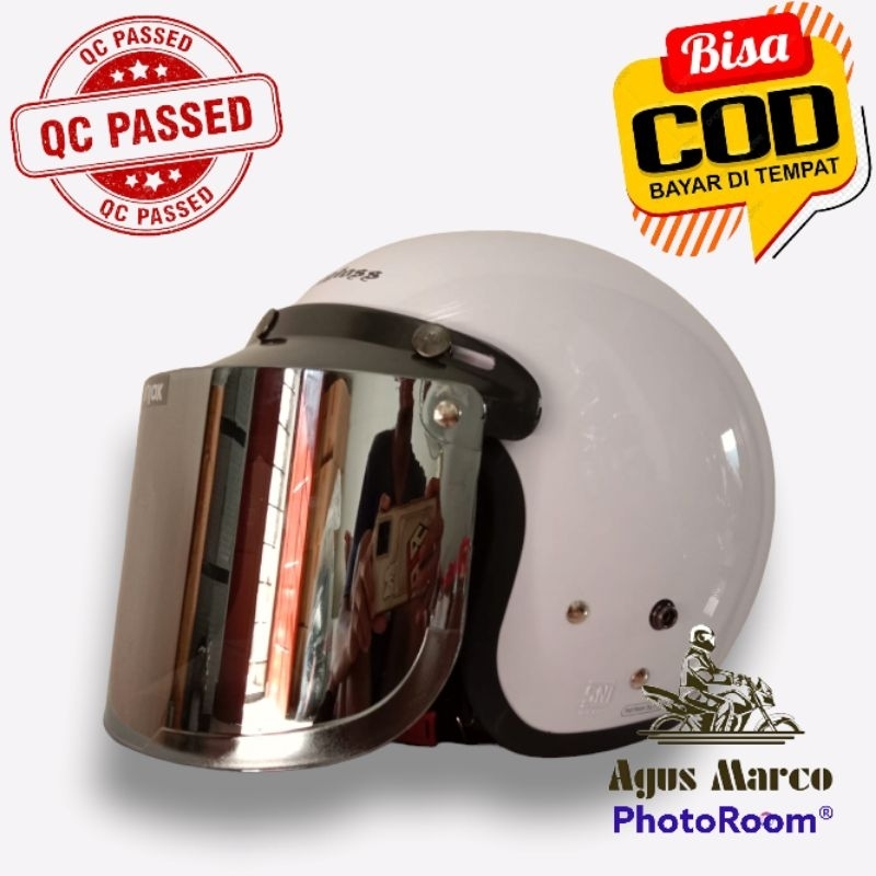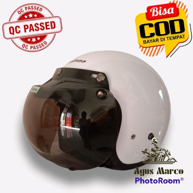 Helm Motor Carglos ARY Putih SNI full leher pria wanita dewasa variasi pet vet dan kaca