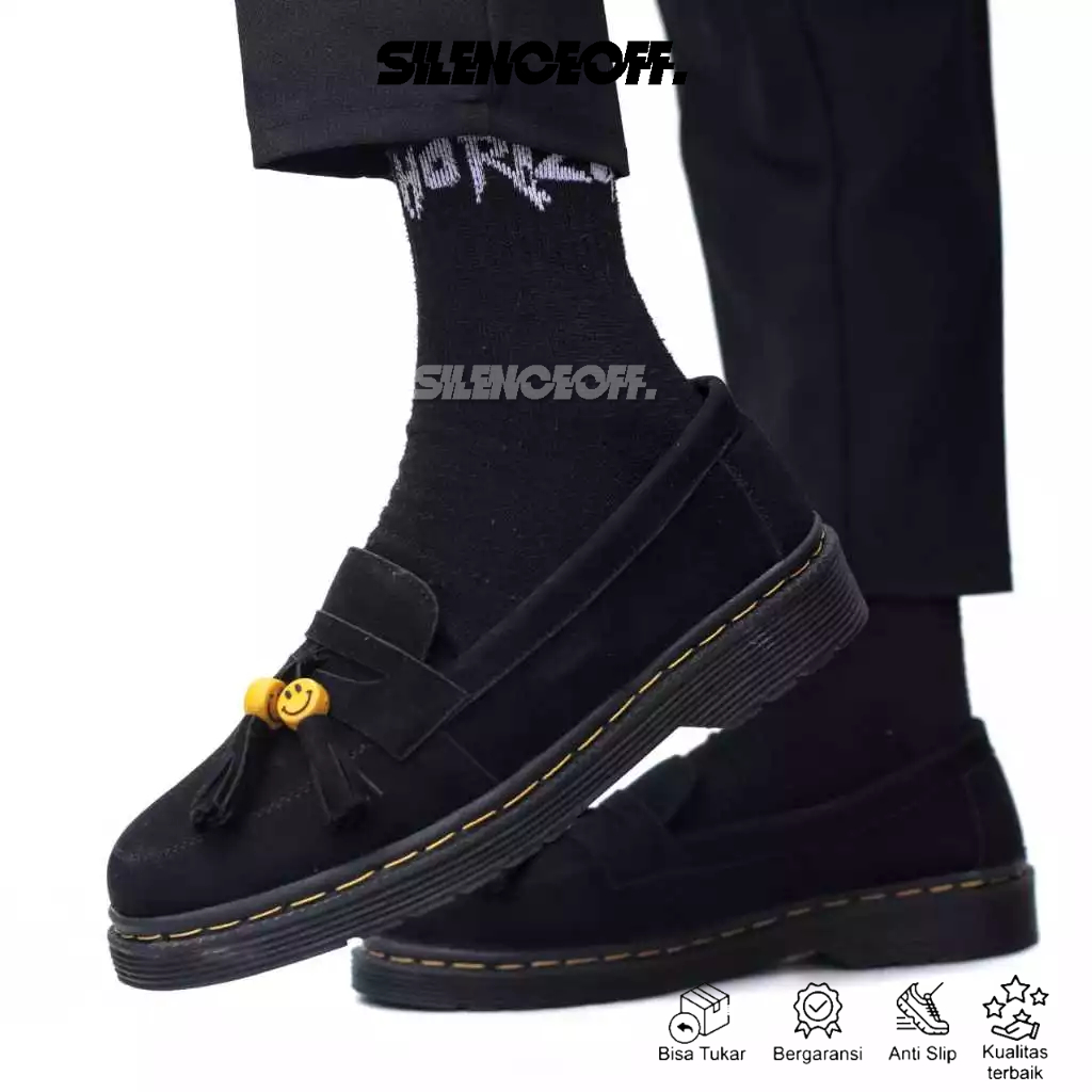SILENCE OFF - Sepatu Formal Loafers Pria Hitam Pantofel Docmart Kerja