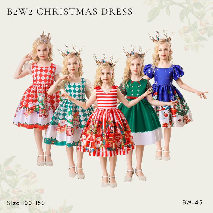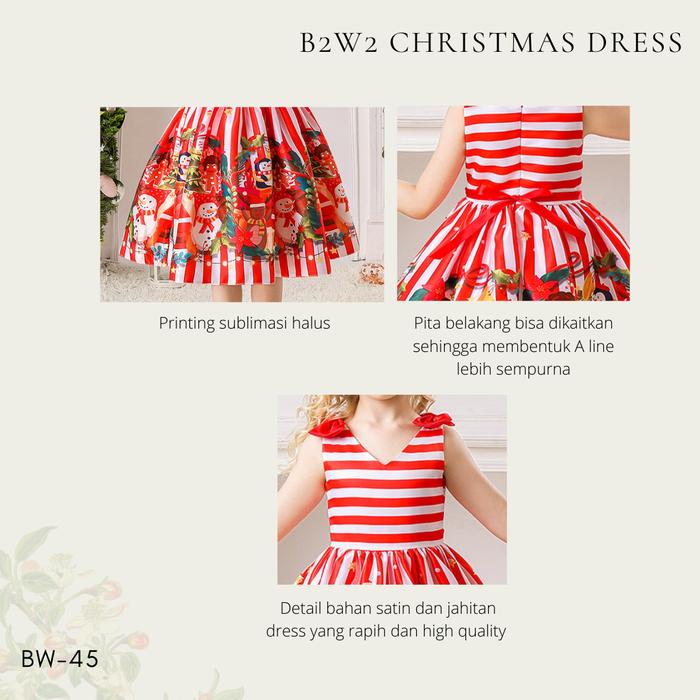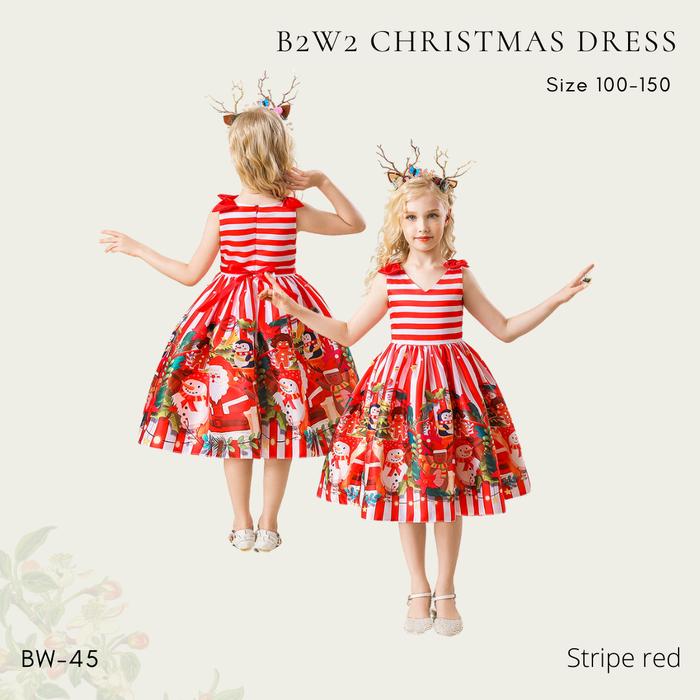 [PROMO] DRESS NATAL ANAK PEREMPUAN SATIN PRINTING LENGAN PENDEK BAJU GAUN CHRISTMAS ANAK TERBARU CSTRIPE MERAH 110