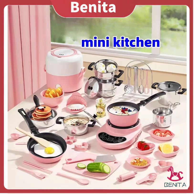MAGELJAYA [24H ] 45PCS Mainan Kitchen Anak-Anak Dengan 45 Perlengkapan Kotak Hadiah - Kompor Cerdas Warna Pink
