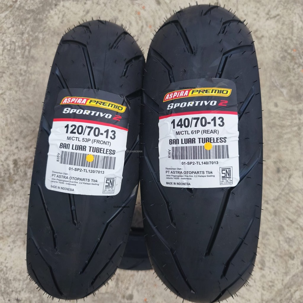 ( PAKET 2 BAN RING 13 ) SPORTIVO 2 !! NMAX 120 70 13 & 140 70 13 ASPIRA SUPER AWET BARU FREE PENTIL