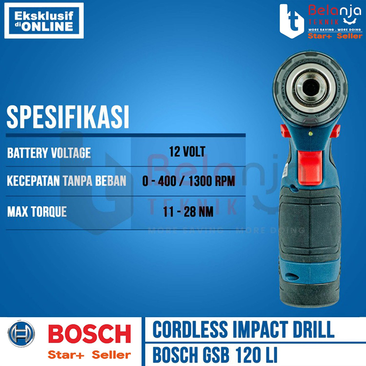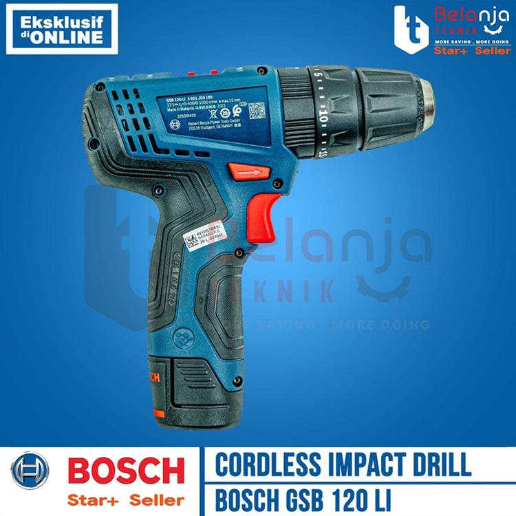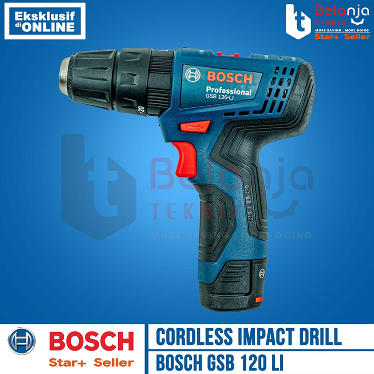 Bosch Bor Baterai Tembok Cordless GSB 120-LI GEN 3 SET 1 Baterai 2 AH FREE Mata Bor Obeng
