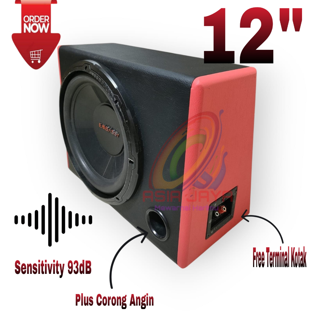Paket Combo Speaker Subwoofer Embassy EM 1289 + Terminal Kotak Dan Corong Angin