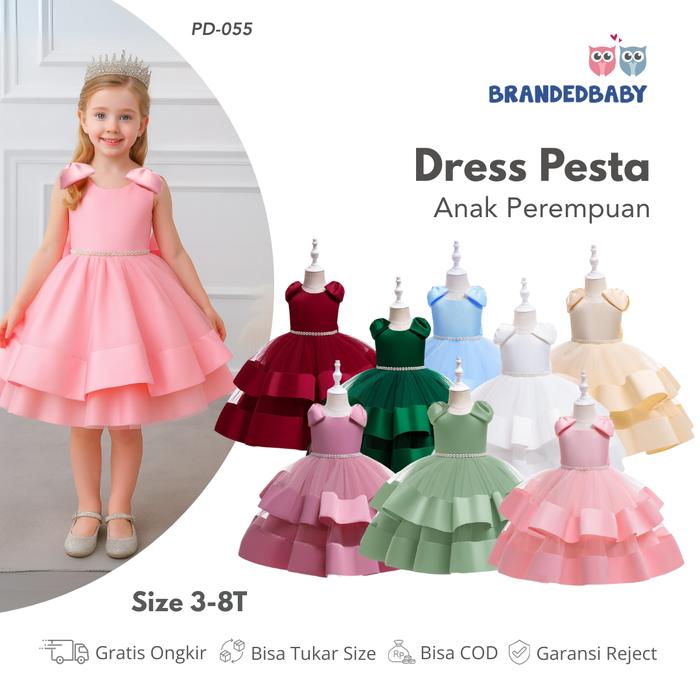 [PROMO] 3T8T DRESS PESTA ANAK PEREMPUAN MEWAH MUTIARA BAJU FASHION TERBARU APINK SIZE 130