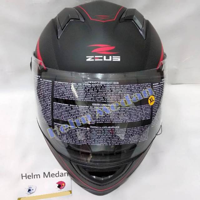Helm Zeus 811 AL12 Black Doff Red bonus smoke visor