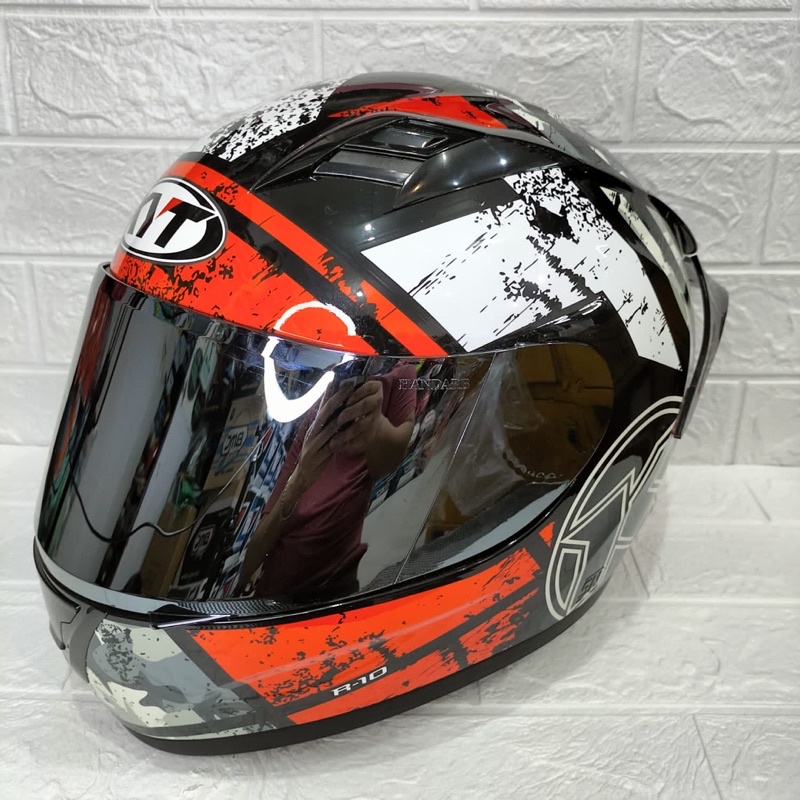 Helm Fullface KYT R10 Seri 3 Aqua Red paket ganteng