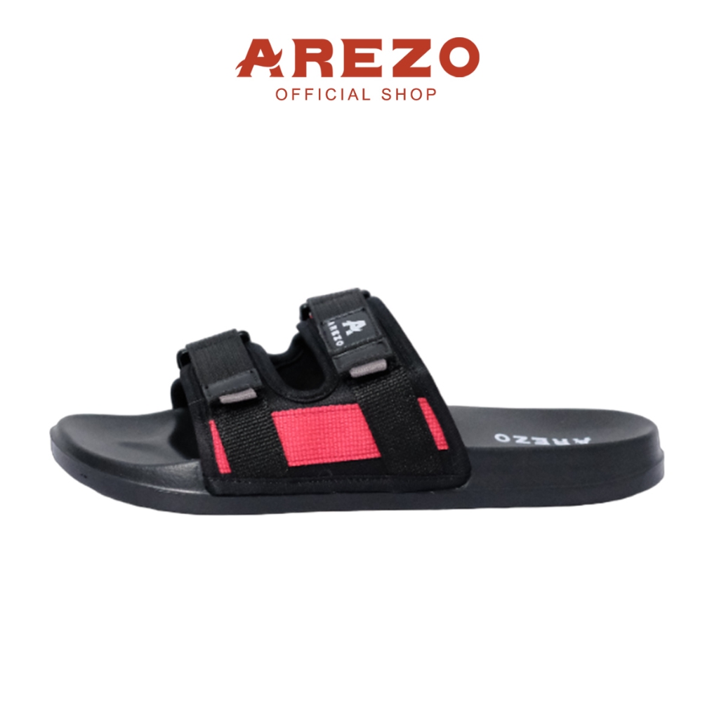 Sandal Slop Pria Distro Strap Aesthetic - Hitam/Abu-abu/Merah