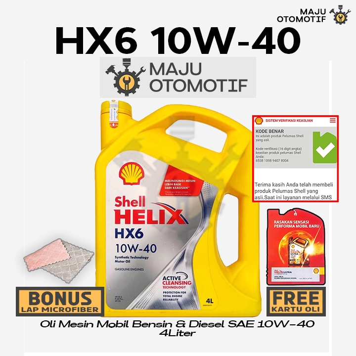 Oli Mesin Shell Helix HX6 SAE 10W-40 4 Liter SCAN BARCODE Bensin Solar Diesel 4Liter 10W40 Full Synthetic API SN CF HX 6