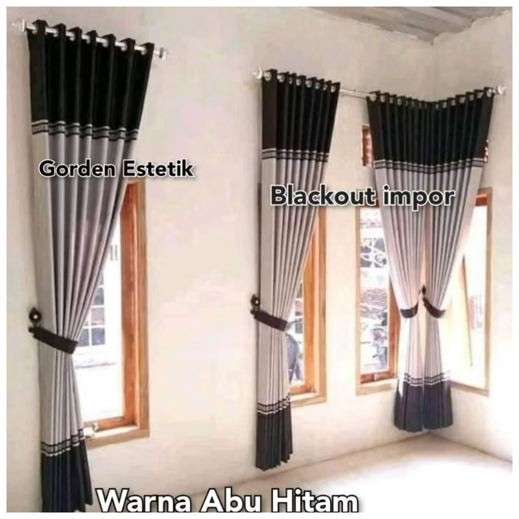 Gorden Hermes Hitam Custom 9 Gelombang Dan 5 Gelombang Bahan Blackout Import