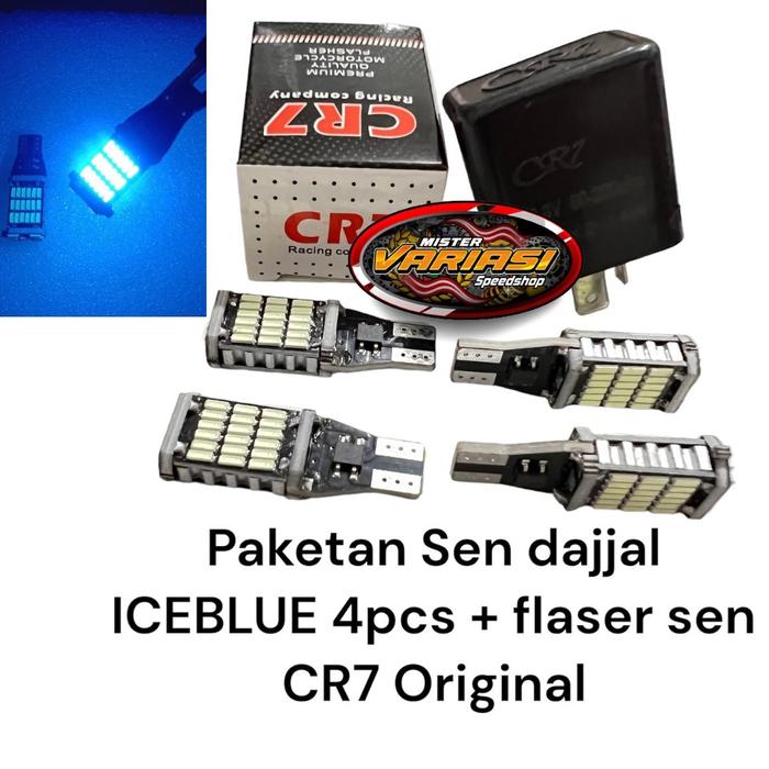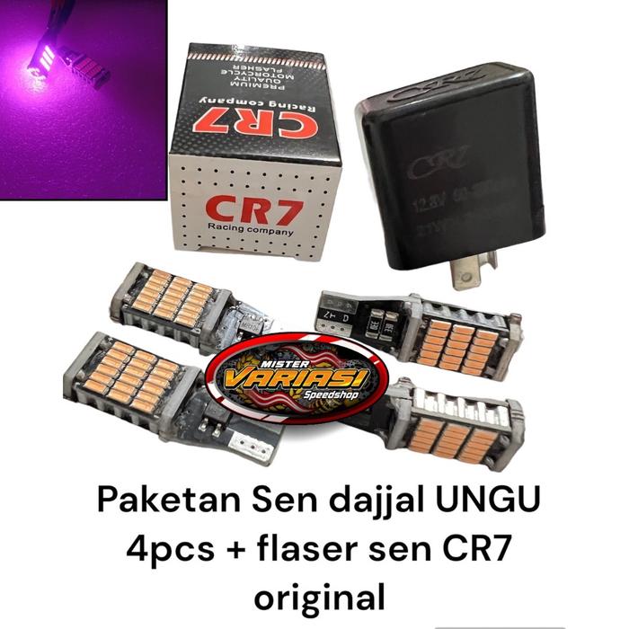 PAKETAN HEMAT LAMPU SEIN SEN DAJJAL 4 PCS + FLASER SEN CR7 ORIGINAL UNIVERSAL SEMUA MOTOR - 4pcs sen dajjal KUNING + Fla