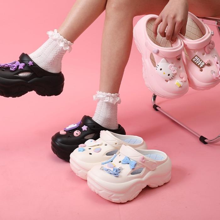 [PROMO] SANDAL ANAK PEREMPUAN DAN DEWASA SLOP SANRIO KUROMI MELODY CINNAMOROLL ANTISLIP 22035 KUROMI BLACK 3738