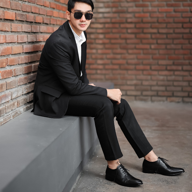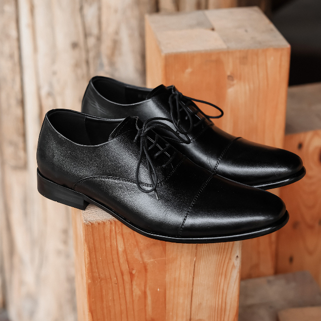 Benitz Boston Sepatu Formal Pria Kulit Pantofel Basic Tali Kantor [B-KT003] - Black