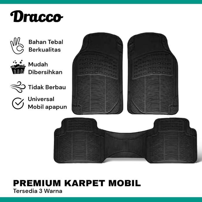Karpet Mobil Karet Universal 3in1 Depan Belakang (3Pcs) Premium DRACCO - 2 BARIS HITAM