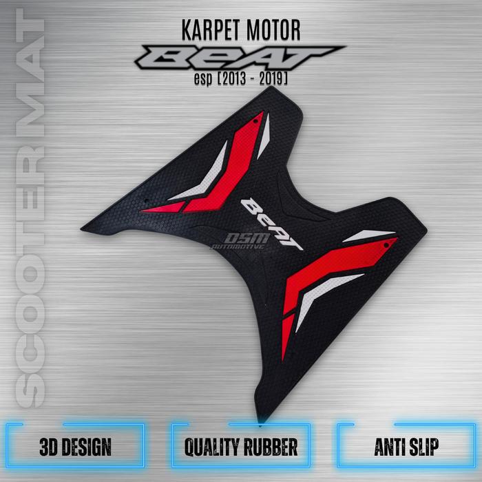 Karpet Motor Honda Beat 2013-2019 / Karpet Motor Anti slip Warna Solid Sporty Sporty - Merah-Abu
