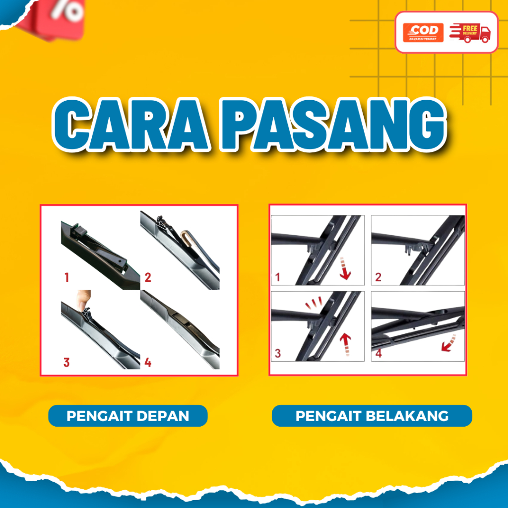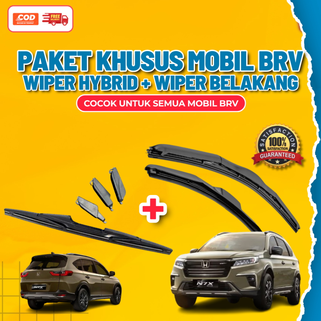 Paket Lengkap Wiper BRV Depan Belakang - 1 Set 2 Pcs Wiper Hybrid Depan Kanan Kiri & 1 Pcs Wiper Belakang Single Karet