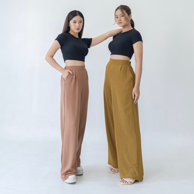 [READY STOCK] Georgios Women l Ely Culottes Pants | Celana Panjang Kulot Wanita Kekinian Bawahan Casual High Waist Dewasa Hitam Loose Airflow Tebal
