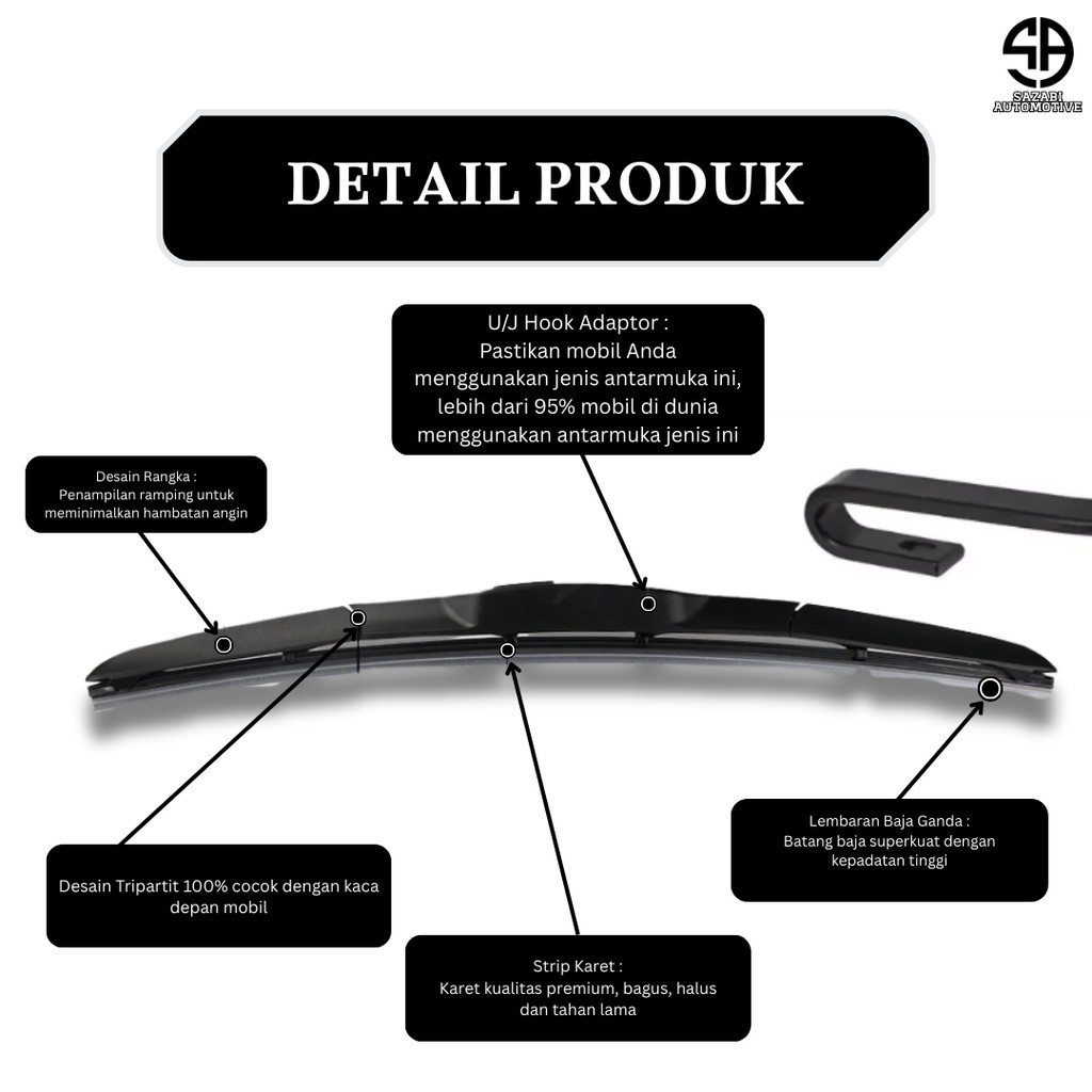 Wiper Mobil Ayla Frameless Wifer Kaca Depan Hybrid Blade Premium 1 Set Kiri Kanan