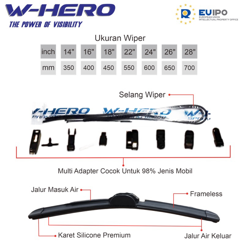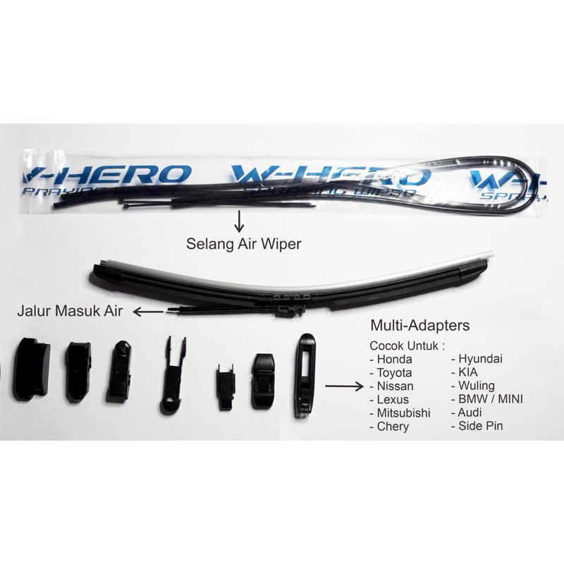 Wiper Mobil Frameless Universal Premium Spraying Wiper Double Layer Silicone Wiper W-Hero
