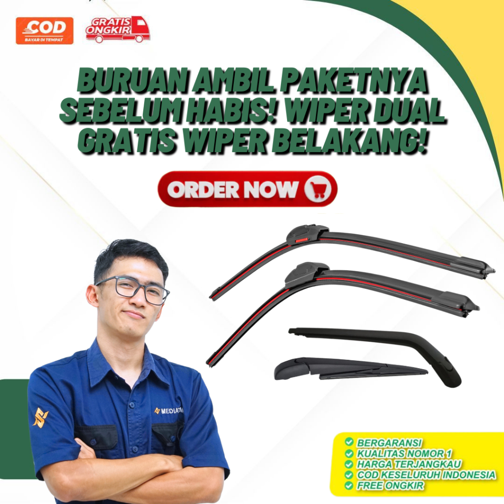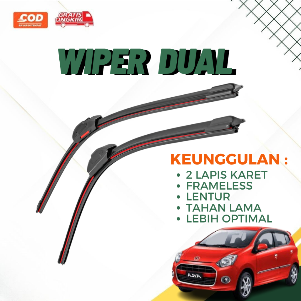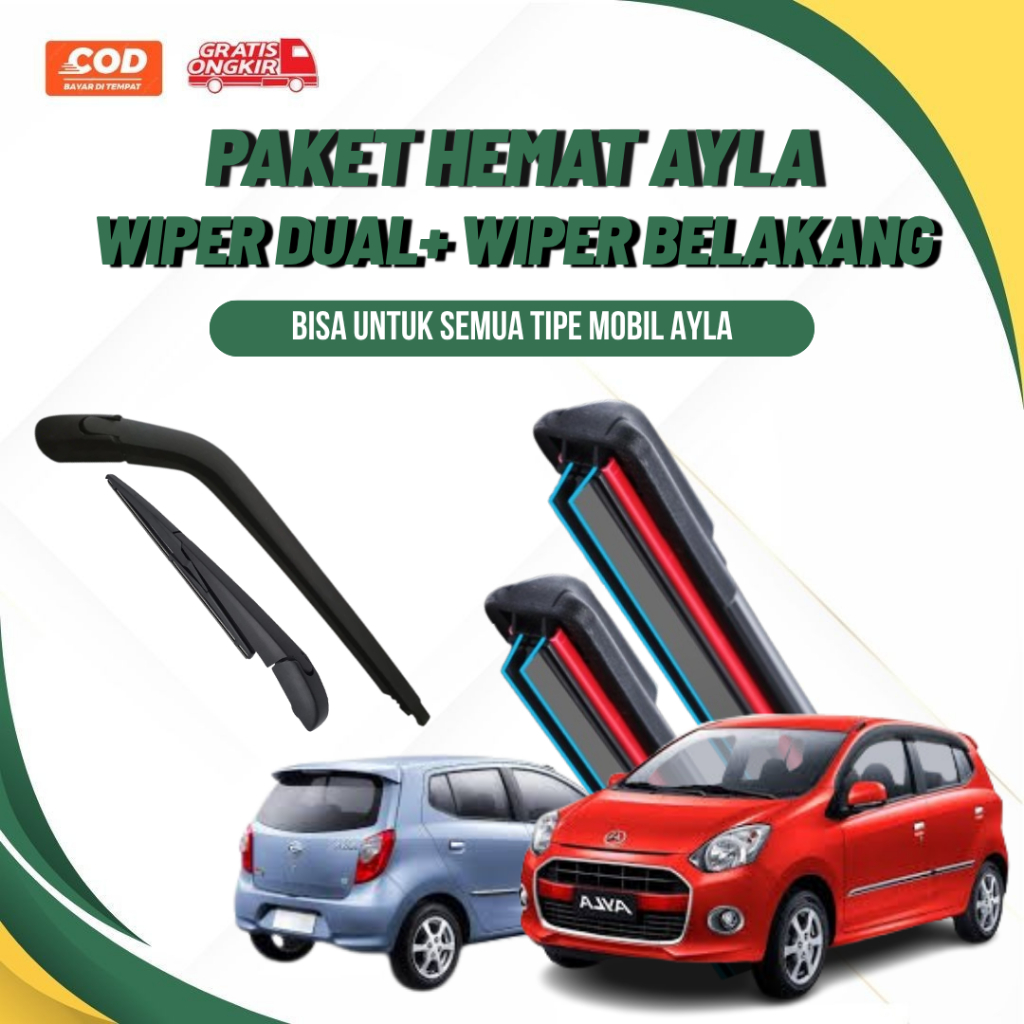Paket Hemat Wiper Dual Karet Double Blade + Wiper Belakang Daihatsu Ayla