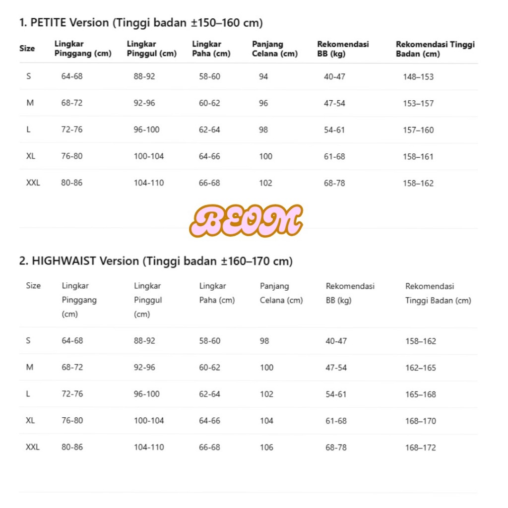S/ pj 94/ petite, M/ pj 96/ petite, L/ pj 98/ petite, XL/ pj 100/ ptite, XXL/ pj 100/ petite, s/ pj 98/ hw, m/ pj 100/ hw, l/ pj 102/ hw, xl/ pj 103/ hw, XXL/ pj 104/ hw