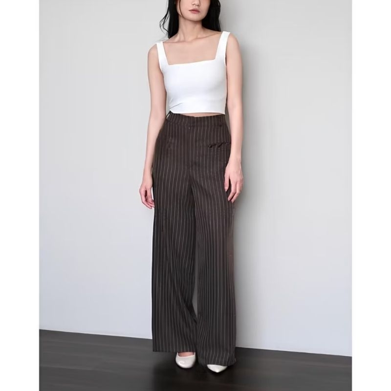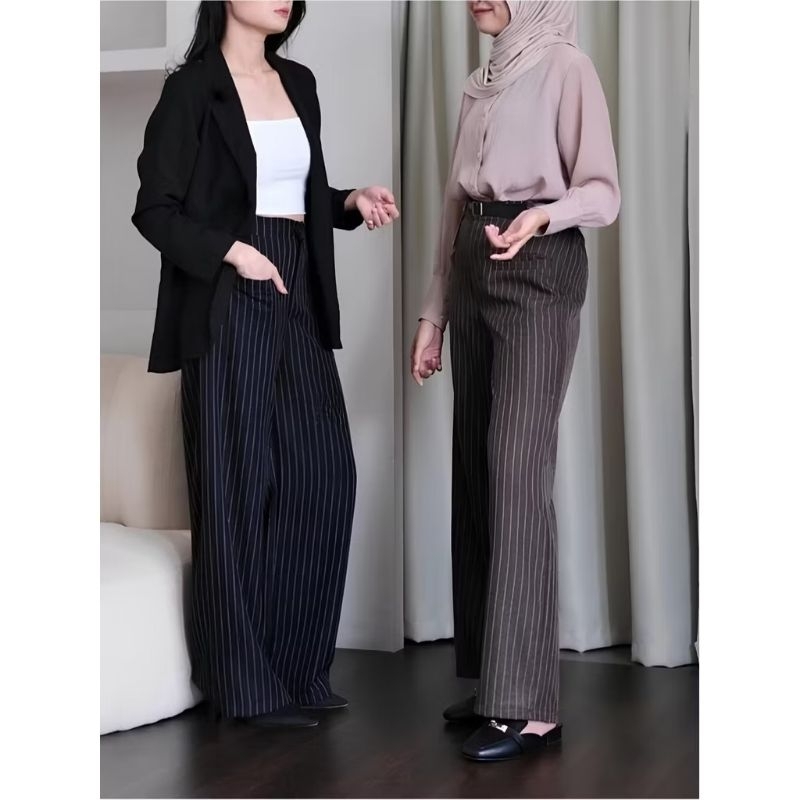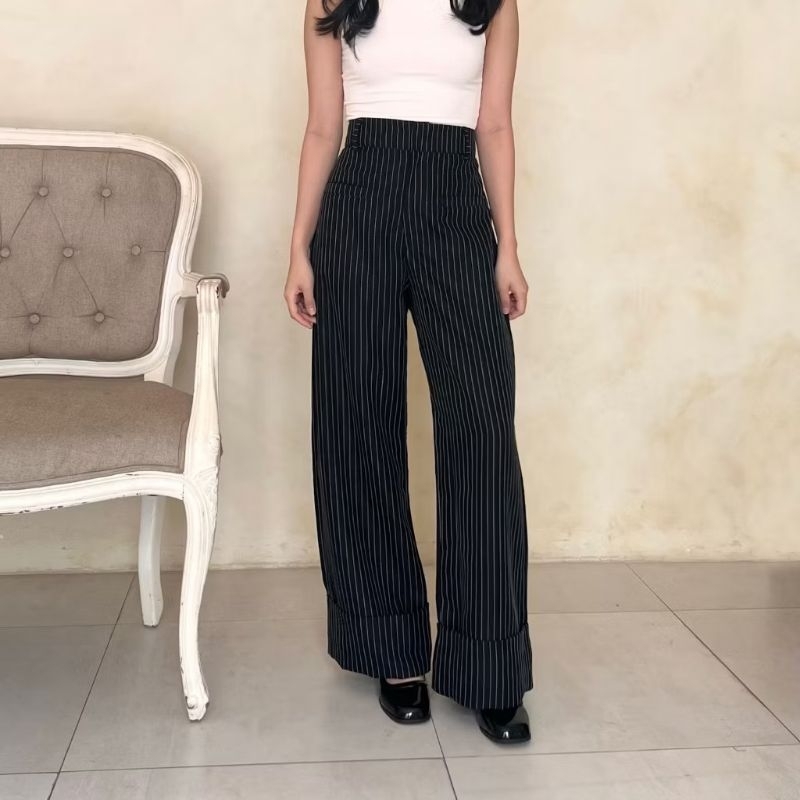 Beom Pants Celana Kulot Wanita Stripe Highwaist Terbaru Kekinian - Stripe pants