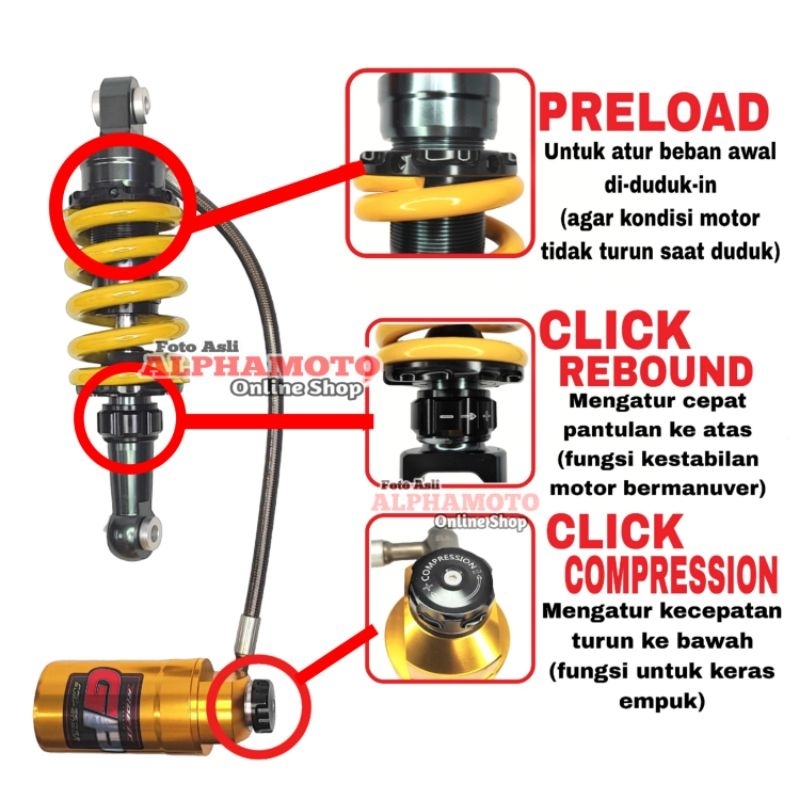 monoshock ride it gp 103 satria 120 r 2tak hiu lumba tabung pisah shock 2 tak