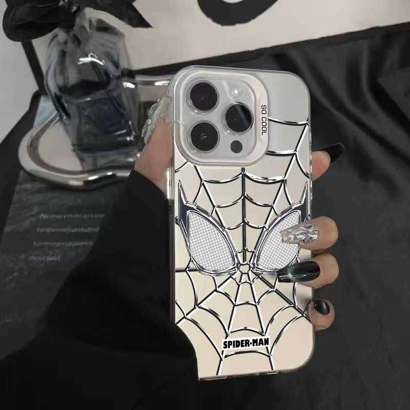 Casing HP Untuk iPhone 15 14 13 12 11 Pro Max Plus 8 7 6 Plus SE2022 SE2020 X XR XS Max Silver Spider Man Shell Ponsel C