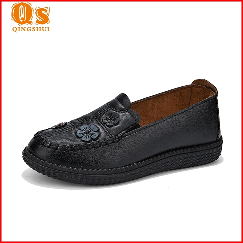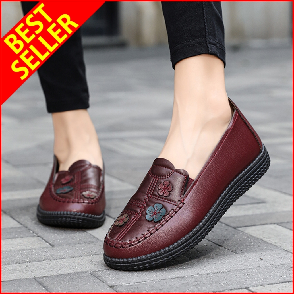 Qingshui Sepatu Wanita Flat Loafer Kulit Kasual Wanita Sepatu Kerja Nyaman Karet Shoes Slip-on Flats Sepatu Malas Sepatu