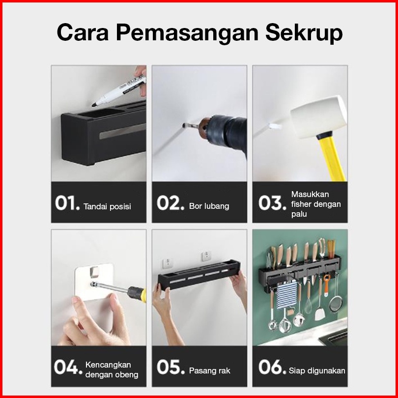 Earise Rak Pisau Dinding Dapur Stainless Steel Rak Gantung Dapur Multifungsi Rak Tempel Tanpa Bor